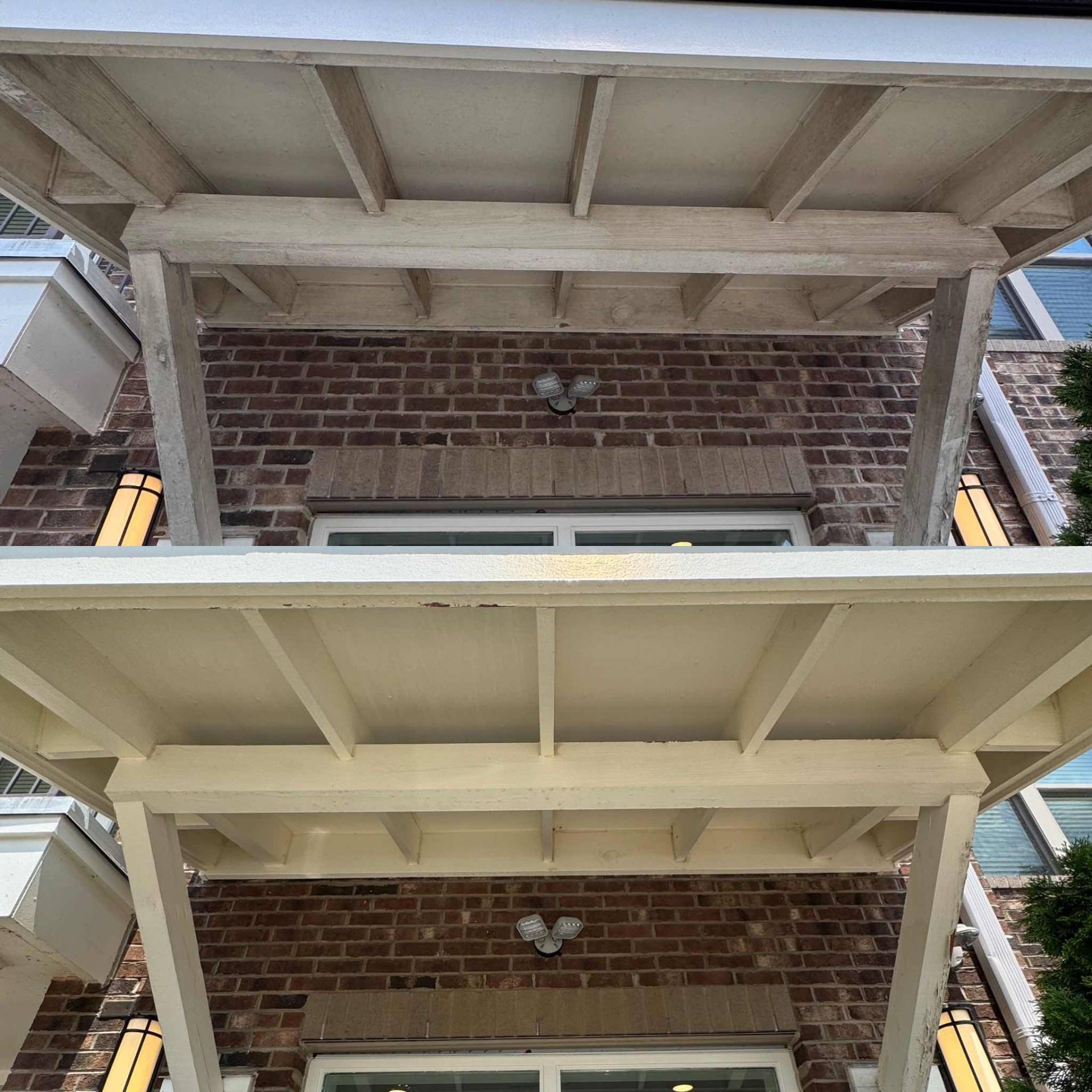 Overture Cary is an independent living community that prides itself on a beautiful experience for active seniors. We contributed to that experience over the summer by pressure washing the building exterior, carports, courtyards, clubhouse, pool deck and all sidewalks. Our technicians used a scissor lift to soft wash all building facades with biodegradable mildewcide solution at low pressure. This tricky operation requires precise attention to detail, and the mildewcide prevents gray and green mildew spores from returning four to five times longer than if high-pressure techniques were used. Afterwards, our team performed a complete freshwater rinse to ensure a uniform finish. The pressure washing removed mildew, algae, pollen, cobwebs and loose dirt from the painted and vinyl surfaces of the homes. Throughout this entire six-day project, we provided the client with a digital progress map showing the step-by-step process.
